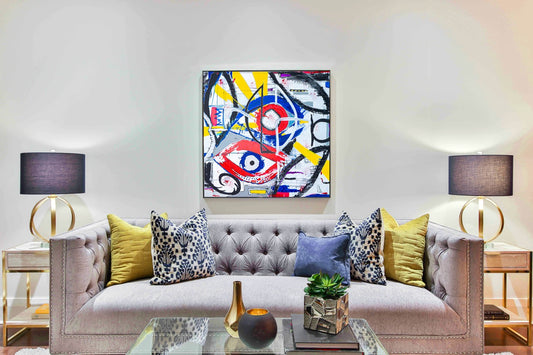 Brothers & Sisters canvas from the Mask series (73x100cm) Technique: Acrylic, Collage, Auxiliaries.