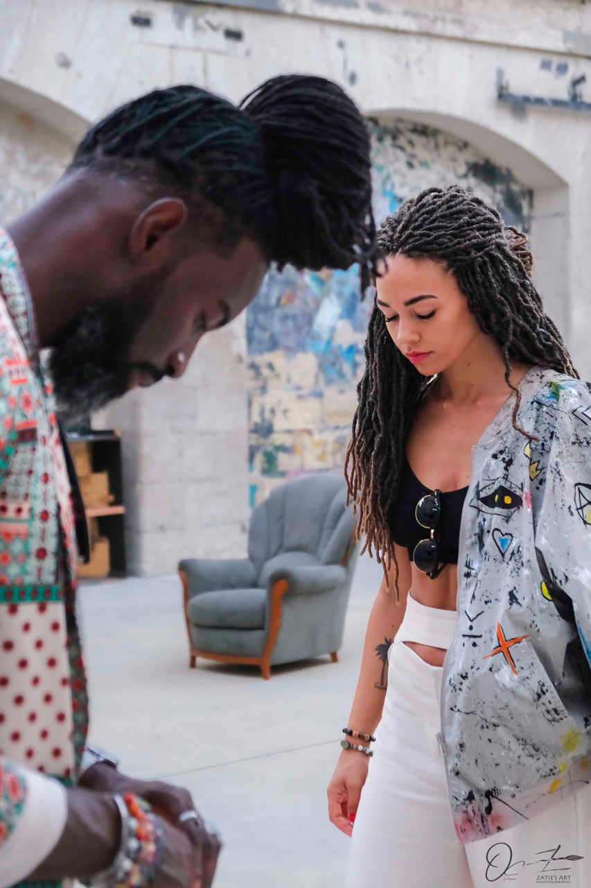 Ses inspirations pour cette pièce: Dé, symboles africains, masque africain, jeu, jeu de cartes, runes.