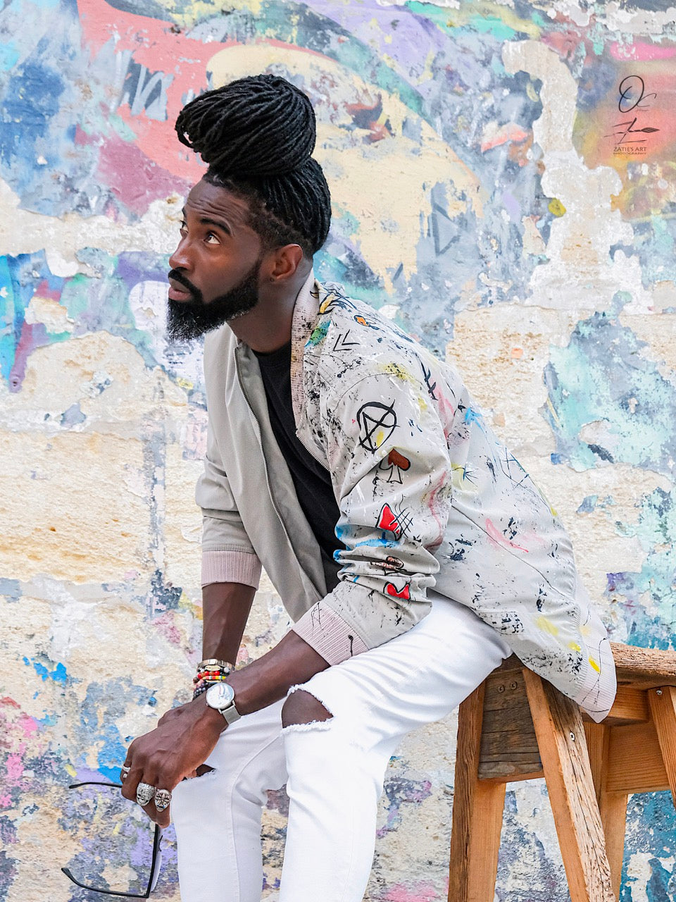 La customisation de ce bombers a été réalisée uniquement avec de la peinture.