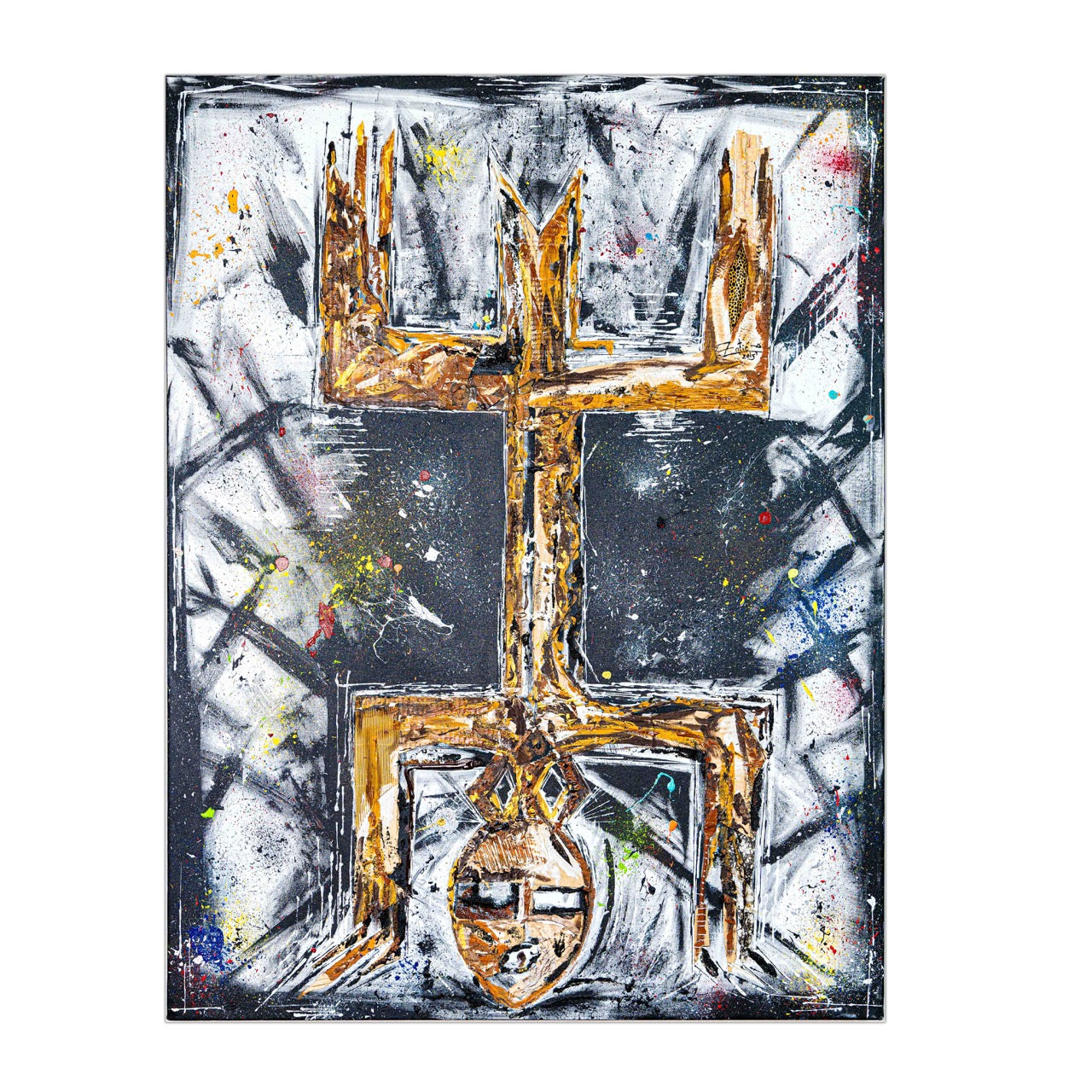 Brothers & Sisters canvas from the Mask series (73x100cm) Technique: Acrylic, Collage, Auxiliaries.