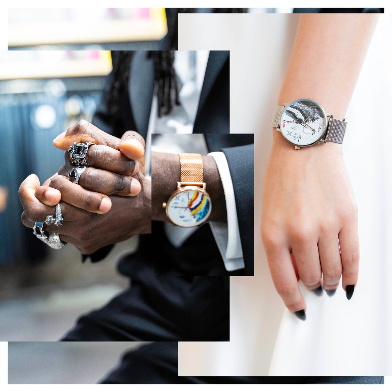 The mixed N&B Kiss watch from the Aurions brand was designed by Zatié, who is the brand's artistic director.